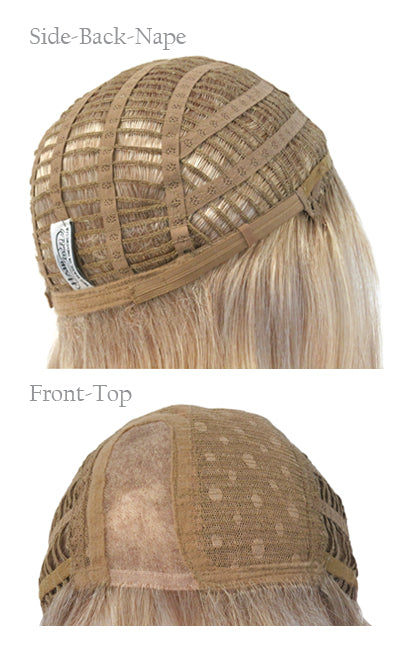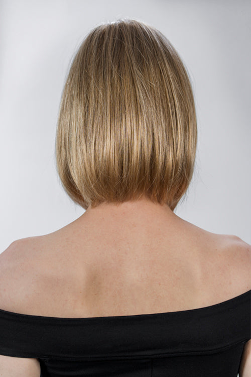 Macie has a hand-tied monofilament parting on the left side which looks as though the hair is growing from the scalp. Macie has a fringe that is 3 ¼” long which is textured for a really natural look. The crown layers are 10 ½” that gently tilt under at the tips.