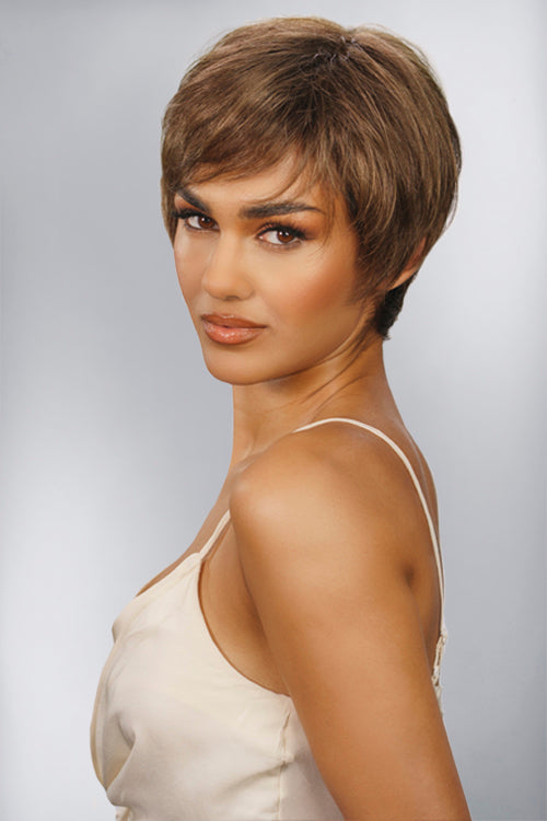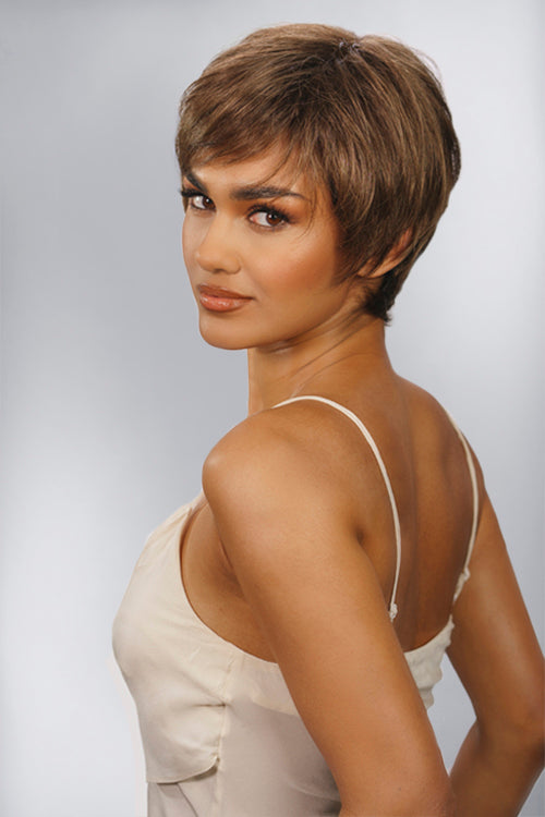 Sleek and simple, Shona ticks all the boxes for a minimal maintenance cropped style. Shona is easy to style and even easier to wear with her monofilament top and lace front hairline for that real hair growth appearance. Short, wispy layers delicately frame the face and fall neatly onto the nape.